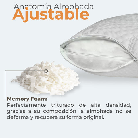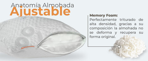 - Memory foam triturado ajustable a la firmeza o suavidad deseada.