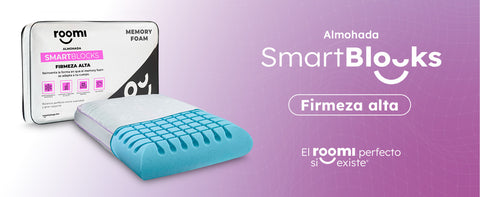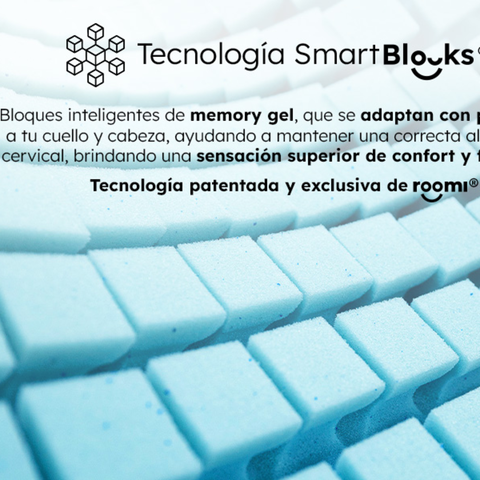 Descubre la nueva forma de dormir con la almohada SmartBlocks® de roomi, creada para quienes buscan descanso inteligente y confort absoluto. Su estructura de bloques inteligentes de memory gel se adapta con precisión a tu cuello y cabeza, reduciendo la tensión cervical.
