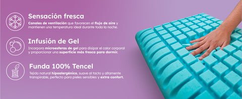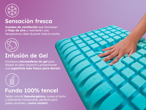 La funda 100% Tencel ofrece una sensación fresca, suave y natural, cuidando tu piel mientras mantiene una temperatura equilibrada toda la noche. Su firmeza alta la hace ideal para quienes necesitan un soporte más estructurado, sin sacrificar la comodidad.