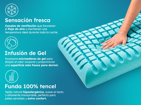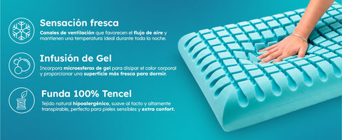 Su funda 100% tencel ofrece frescura, suavidad y transpirabilidad, cuidando tu piel y regulando la temperatura durante el descanso. Gracias a su firmeza media, brinda el equilibrio perfecto entre soporte y suavidad, ideal para quienes cambian de posición al dormir.