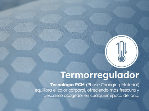 La colchoneta roomi Top Fresh está diseñada para llevar tu descanso a otro nivel gracias a la tecnología PCM (Phase Changing Material), que regula de forma activa la temperatura, brindándote frescura y confort constante durante todo el año.