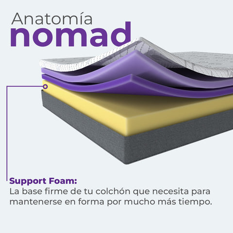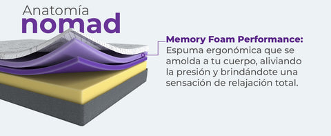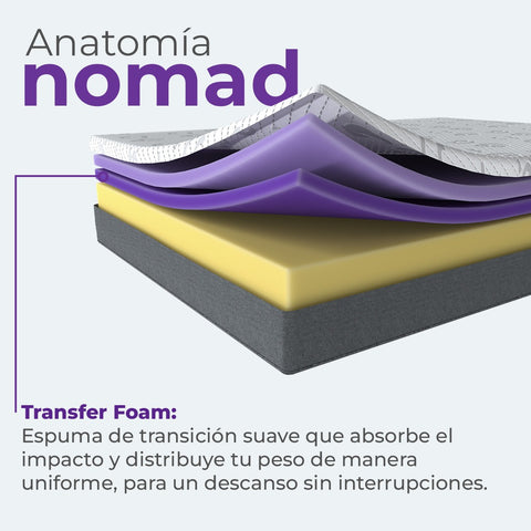 Tecnología de triple capa (Memory Foam, Transfer Foam y Support Foam) que alivia puntos de presión, distribuye el peso y brinda soporte firme. Su cubierta es hipoalergénica, removible y transpirable, ideal para mantener un descanso fresco y saludable.